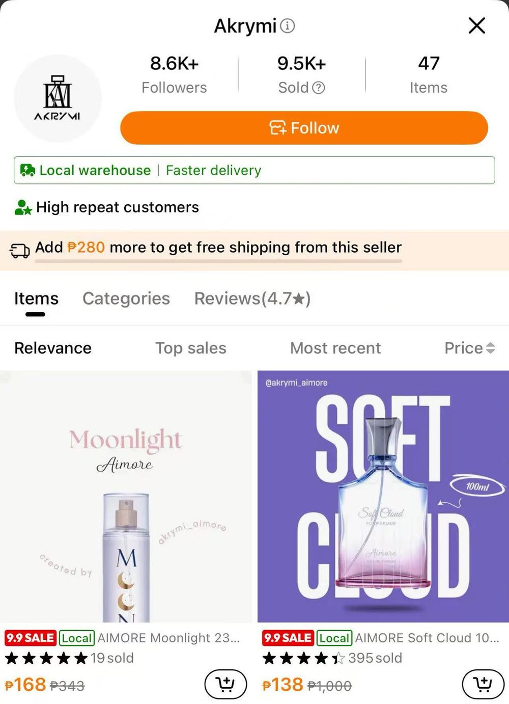AKRYMI is a perfume brand that started in 2021 and made its mark through TikTok Shop Philippines.